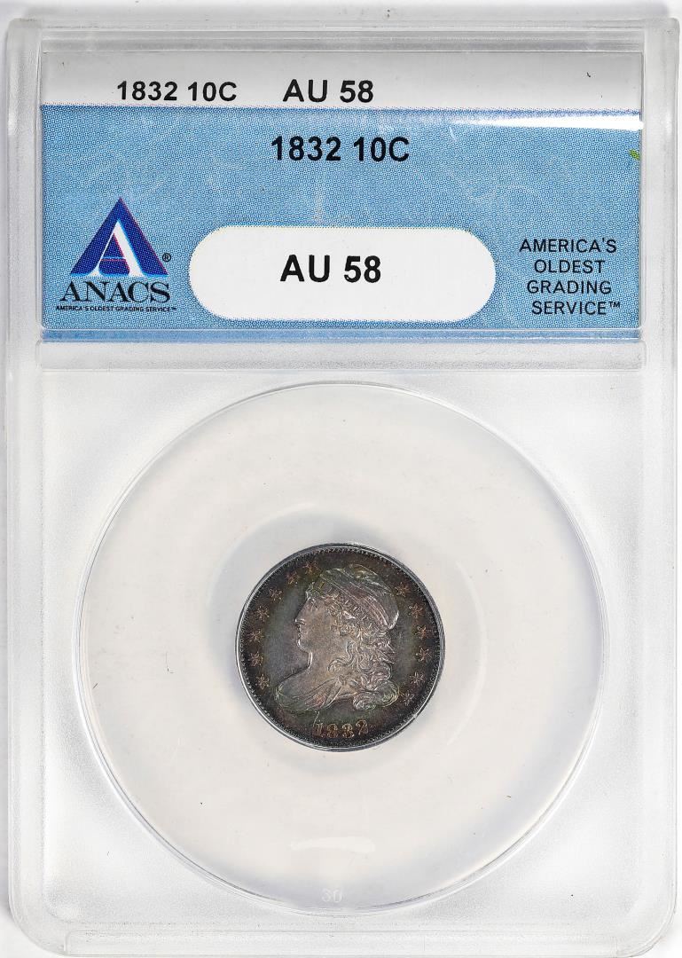 One 1832 Capped Bust Dime Coin ANACS AU58. ANACS Certified.