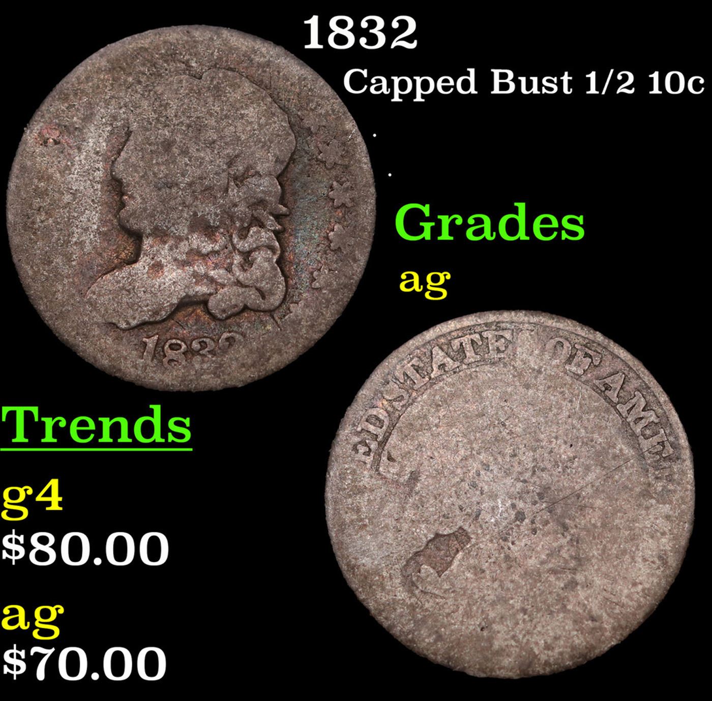 1832 Capped Bust Half Dime 1/2 10c Grades ag.