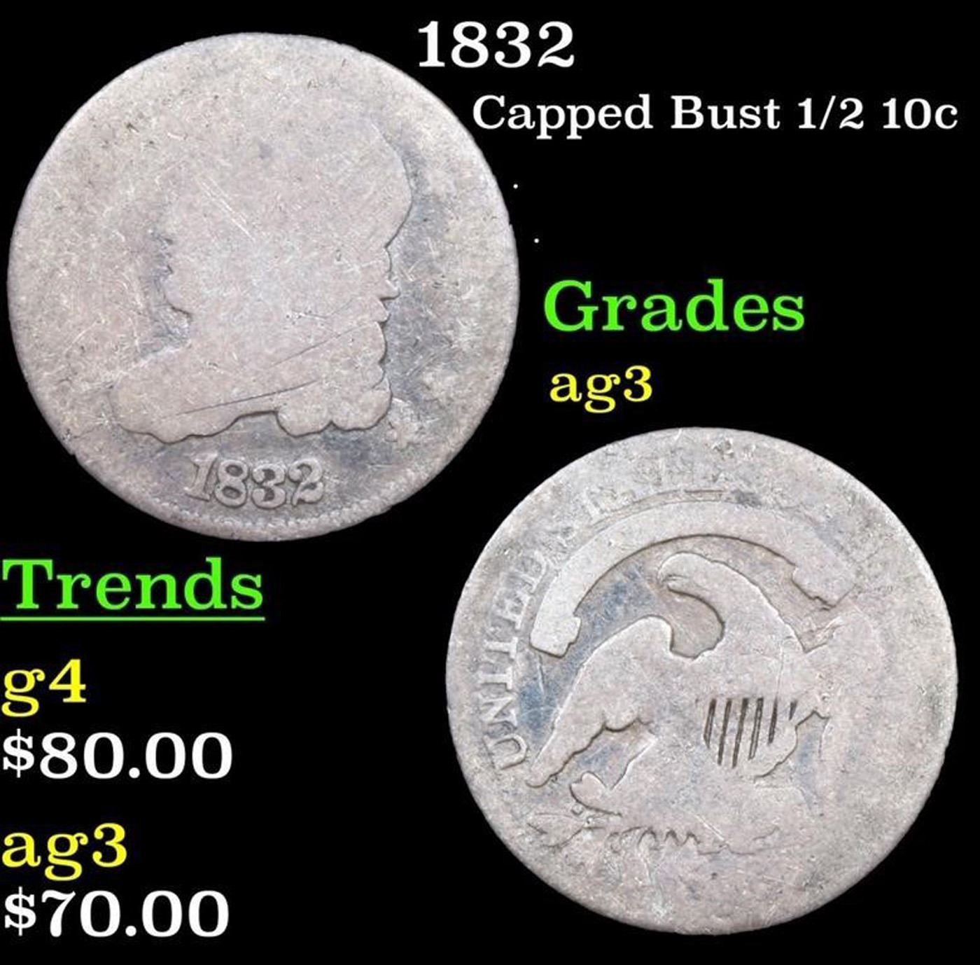 1832 Capped Bust Half Dime 1/2 10c Grades ag.