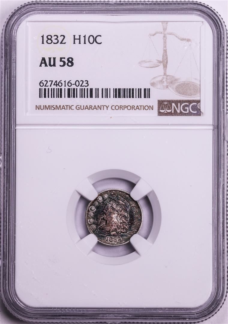 One 1832 Capped Bust Half Dime Coin NGC AU58. NGC Certified.