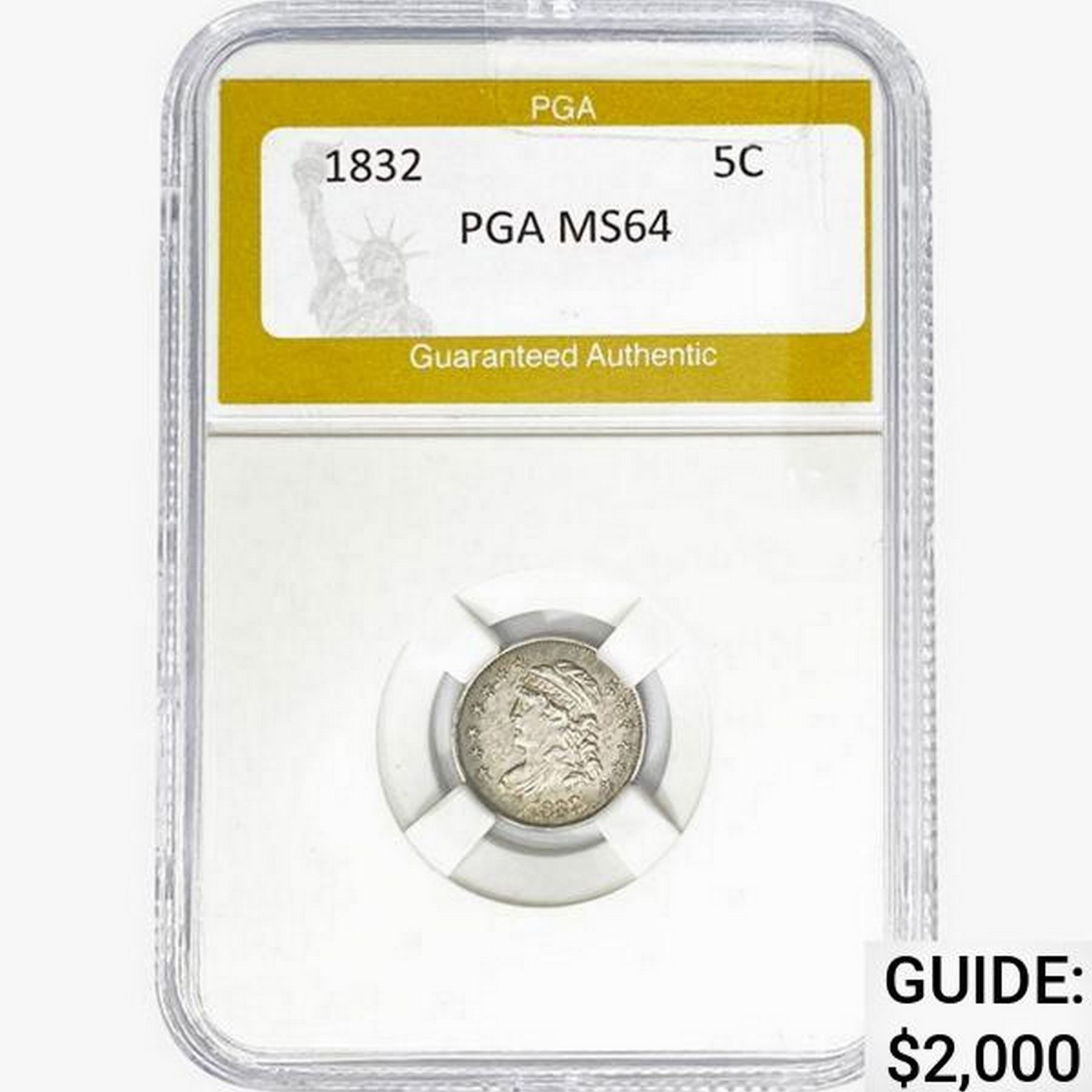 1832 Capped Bust Half Dime PGA MS64