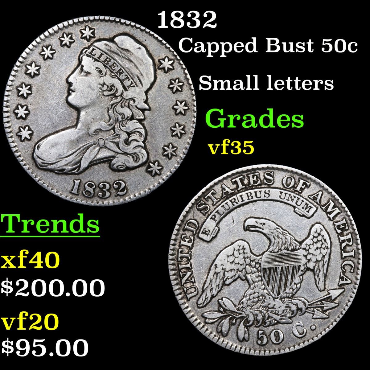 1832 Small letters . Capped Bust Half Dollar 50c Grades vf++.