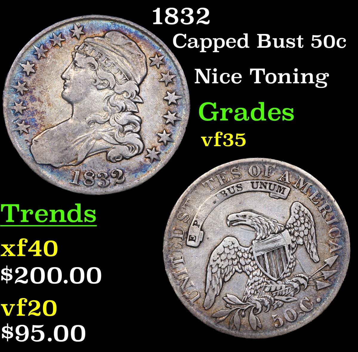 1832 Nice Toning . Capped Bust Half Dollar 50c Grades vf++.