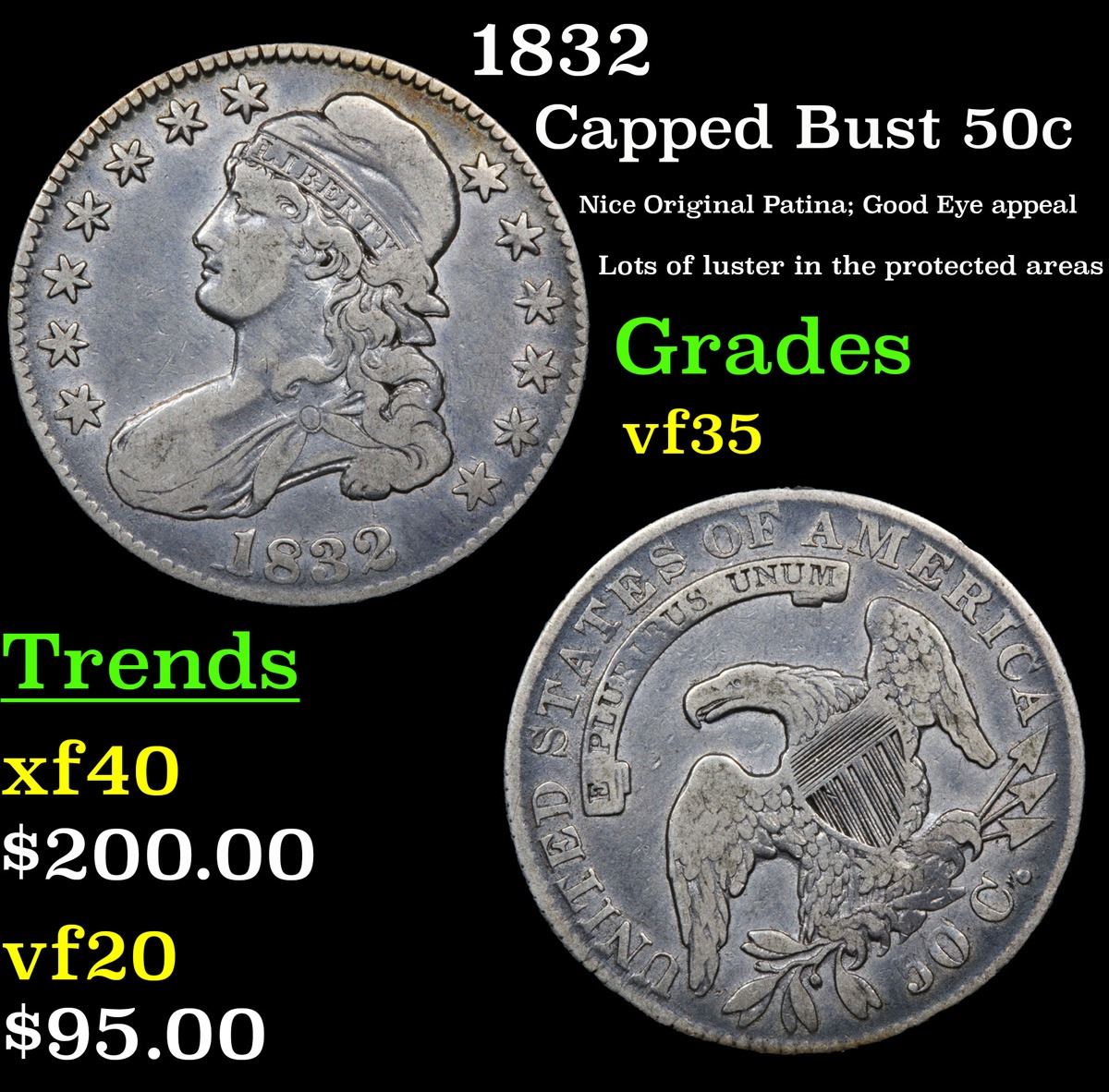 1832 Capped Bust Half Dollar 50c Grades vf++.