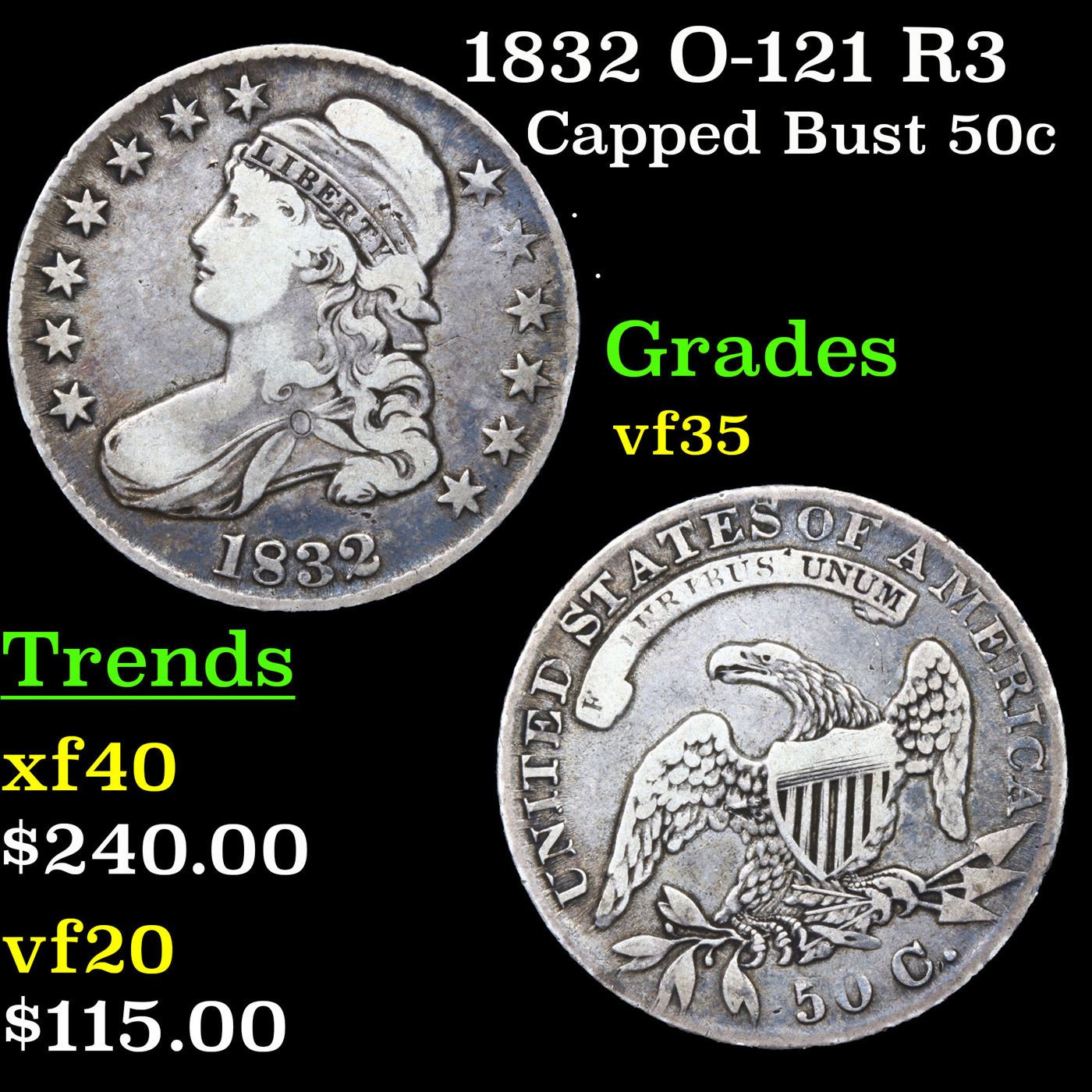 1832 O-121 R3 Capped Bust Half Dollar 50c Grades vf++.