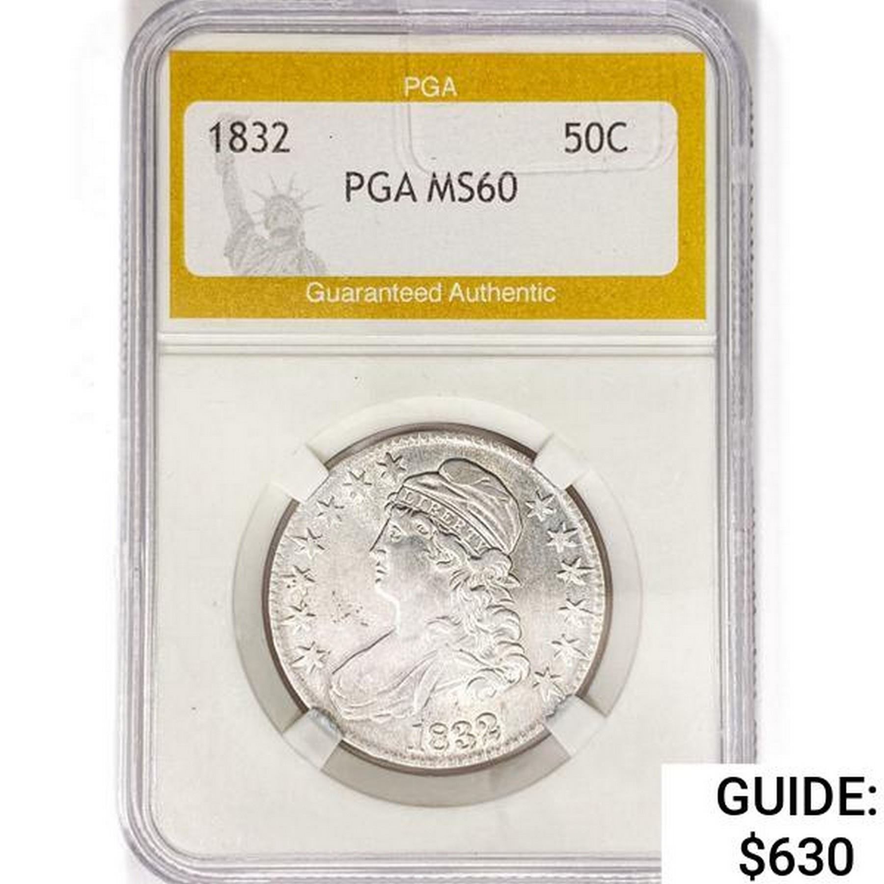 1832 Capped Bust Half Dollar PGA MS60