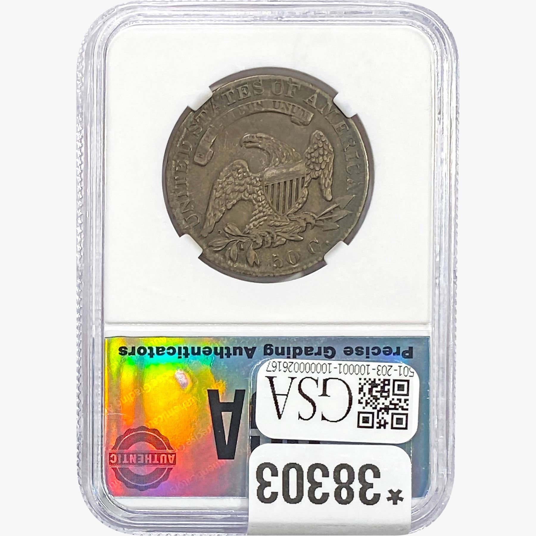 COINS AND CURRENCY LISTED IN GSA’S CATALOG AS GRADED AND ENCAPSULATED BY PCGS, NGC, ANACS, ICG, PCGS CURRENCY, PMG, PCGS BANKNOTE GRADING, CMC OR ANY OTHER THIRD-PARTY GRADING SERVICE ARE LIKEWISE SOLD “AS-IS” EXCEPT AS EXPRESSLY SET FORTH HEREIN. ALL THIRD-PARTY GRADING SERVICE GUARANTEES, INCLUDING AUTHENTICITY, ARE THE SOLE RESPONSIBILITY OF THE THIRD-PARTY GRADING SERVICE AND NOT WARRANTIES OR GUARANTEES OF GSA. BIDDERS SHOULD CONTACT THESE THIRD-PARTY GRADING SERVICES DIRECTLY WITH RESPECT TO ANY CLAIMS OR QUESTIONS THEY MAY HAVE CONCERNING THEIR GUARANTEES AND WARRANTIES. BIDDERS ACKNOWLEDGE AND AGREE THAT AUCTIONEER IS NOT BOUND BY OR LIABLE FOR ANY OPINION OR CERTIFICATION BY ANY THIRD-PARTY GRADING SERVICE. REMOVAL OF A PRODUCT FROM ITS PROTECTIVE CASING OR HOLDER OR ALTERATION OF ANY COIN HOLDER WAIVES ALL RIGHTS CONCERNING THE PRODUCT CONTAINED THEREIN.