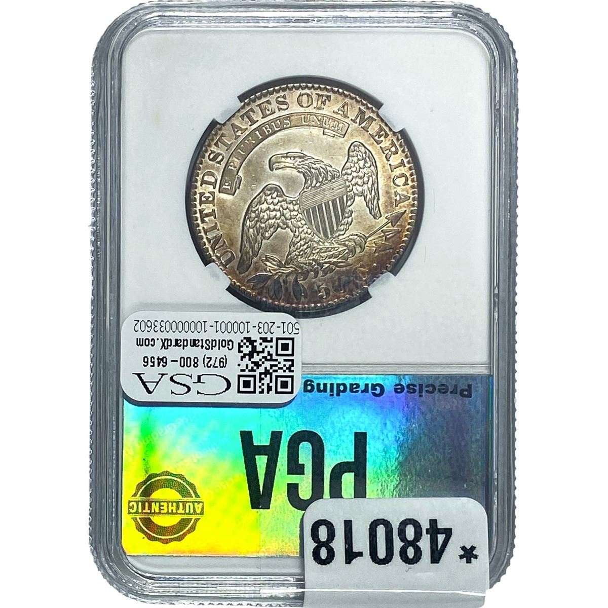 e. Coins sold referencing a third-party grading service are sold “AS IS” without any express or implied warranty, except for a guarantee by GSA that they are genuine. Removal or alteration of the holder, voids all of Bidder’s claims concerning that Product. Certain warranties may be available from the grading services and Bidders are referred to them for further details: Numismatic Guaranty Corporation (NGC), PO Box 4776, Sarasota, FL 34230, www.ngccoin.com/services/writtenguarantee.asp; Professional Coin Grading Services (PCGS), PO Box 9458, Newport Beach, CA 92658, www.pcgs.com/guarantee.html; ANACS, 6555 S. Kenton St., Ste. 303, Englewood, CO 80111; and Independent Coin Grading Co. (ICG), 7901 East Bellview, Ave., Suite 50, Englewood, CO 80111.
