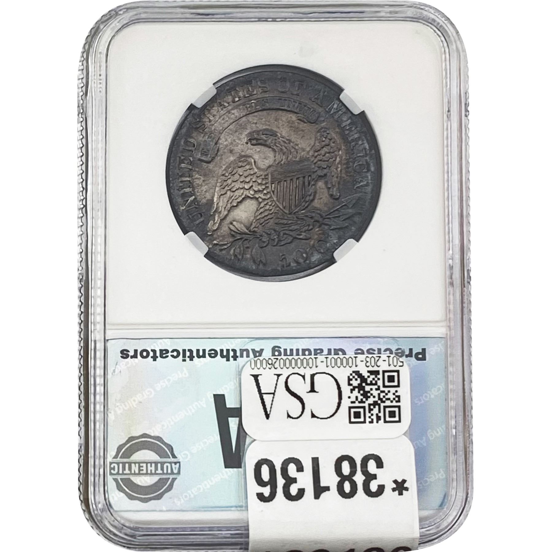 COINS AND CURRENCY LISTED IN GSA’S CATALOG AS GRADED AND ENCAPSULATED BY PCGS, NGC, ANACS, ICG, PCGS CURRENCY, PMG, PCGS BANKNOTE GRADING, CMC OR ANY OTHER THIRD-PARTY GRADING SERVICE ARE LIKEWISE SOLD “AS-IS” EXCEPT AS EXPRESSLY SET FORTH HEREIN. ALL THIRD-PARTY GRADING SERVICE GUARANTEES, INCLUDING AUTHENTICITY, ARE THE SOLE RESPONSIBILITY OF THE THIRD-PARTY GRADING SERVICE AND NOT WARRANTIES OR GUARANTEES OF GSA. BIDDERS SHOULD CONTACT THESE THIRD-PARTY GRADING SERVICES DIRECTLY WITH RESPECT TO ANY CLAIMS OR QUESTIONS THEY MAY HAVE CONCERNING THEIR GUARANTEES AND WARRANTIES. BIDDERS ACKNOWLEDGE AND AGREE THAT AUCTIONEER IS NOT BOUND BY OR LIABLE FOR ANY OPINION OR CERTIFICATION BY ANY THIRD-PARTY GRADING SERVICE. REMOVAL OF A PRODUCT FROM ITS PROTECTIVE CASING OR HOLDER OR ALTERATION OF ANY COIN HOLDER WAIVES ALL RIGHTS CONCERNING THE PRODUCT CONTAINED THEREIN.