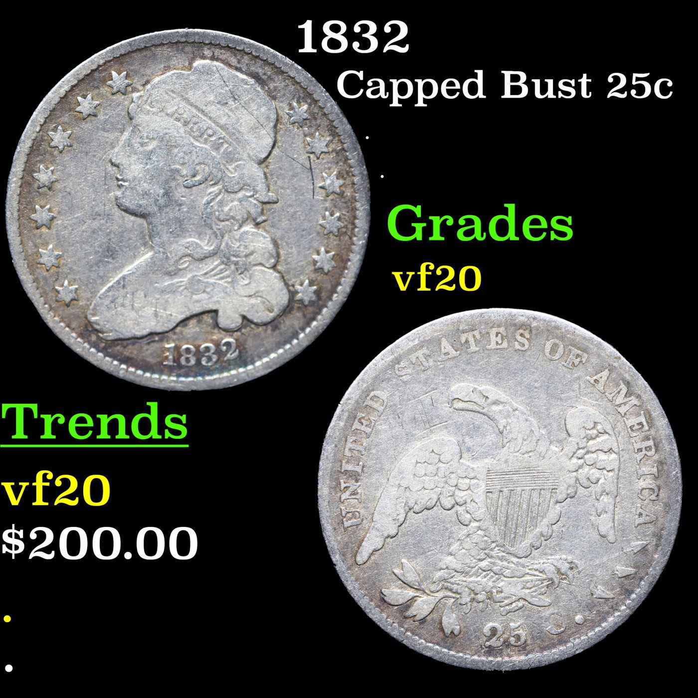 1832 Capped Bust Quarter 25c Grades vf, very fine.