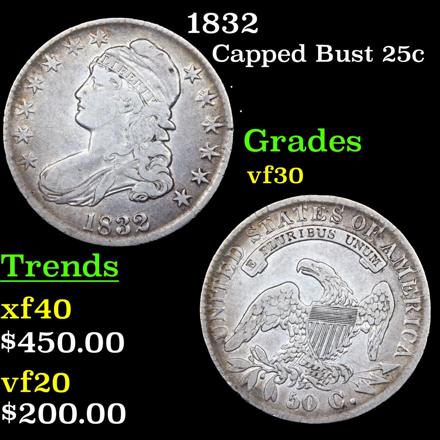 1832 Capped Bust Quarter 25c Grades vf++.