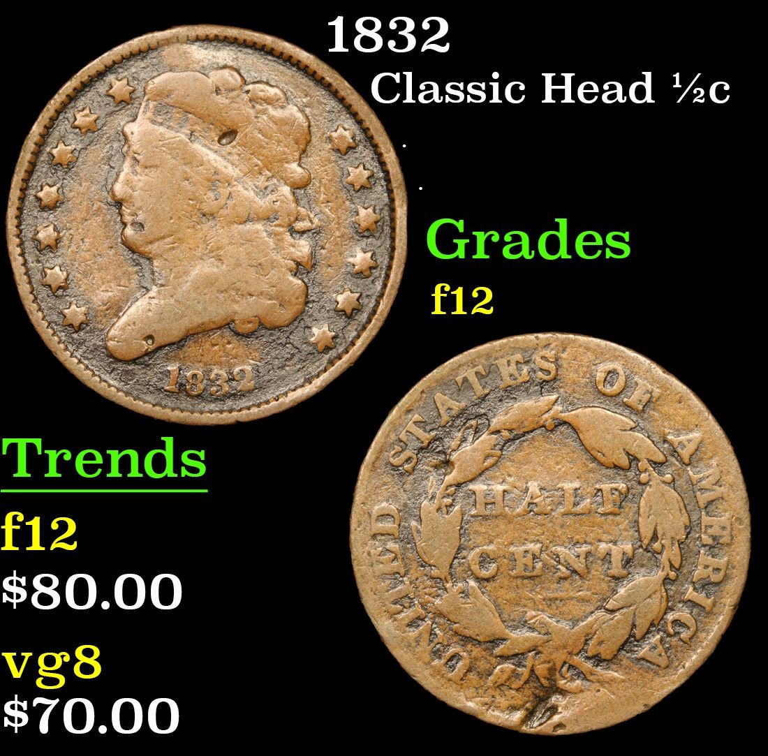 1832 Classic Head half cent 1/2c Grades f, fine.