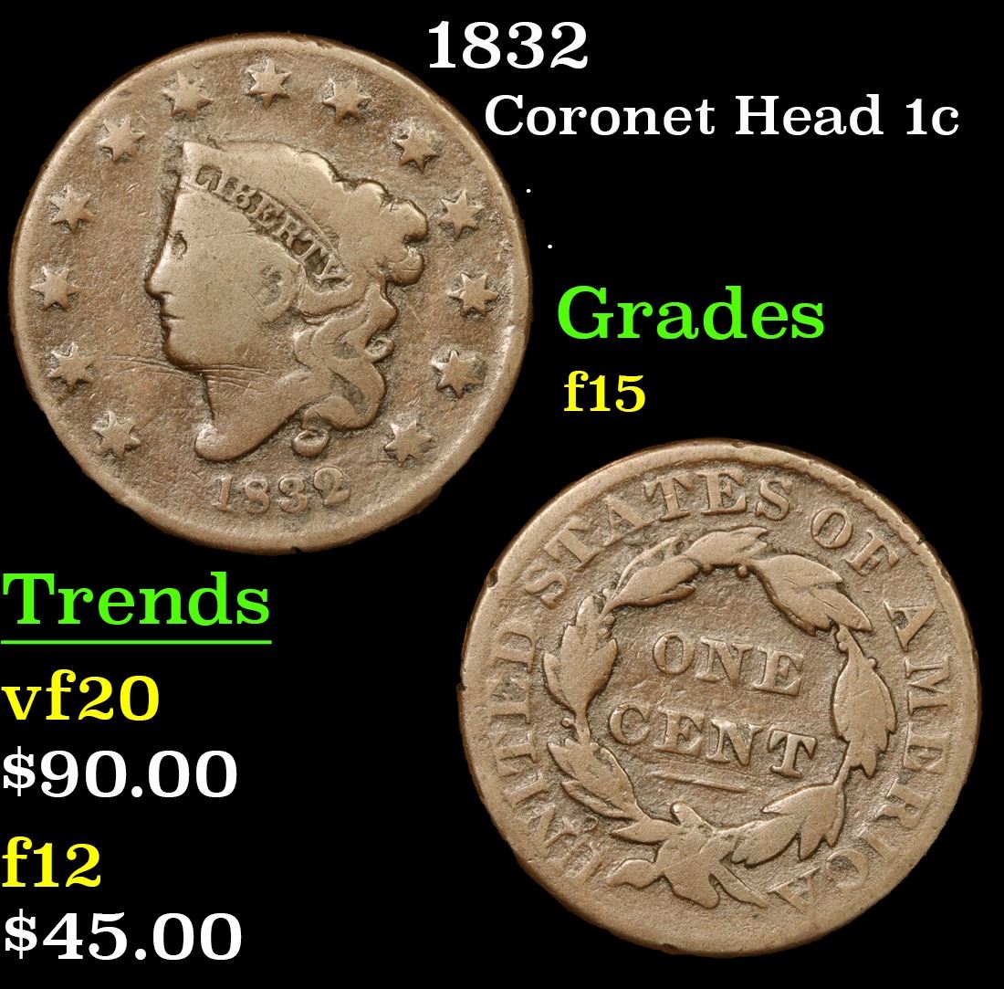 1832 . . Coronet Head Large Cent 1c Grades f+.