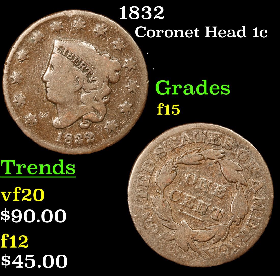 1832 . . Coronet Head Large Cent 1c Grades f+.