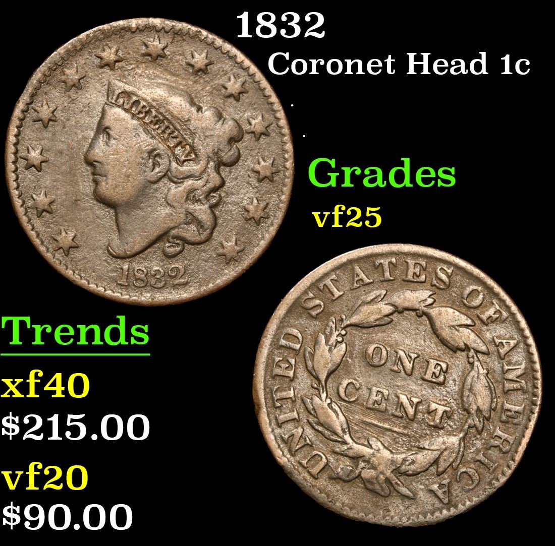 1832 . . Coronet Head Large Cent 1c Grades vf+.