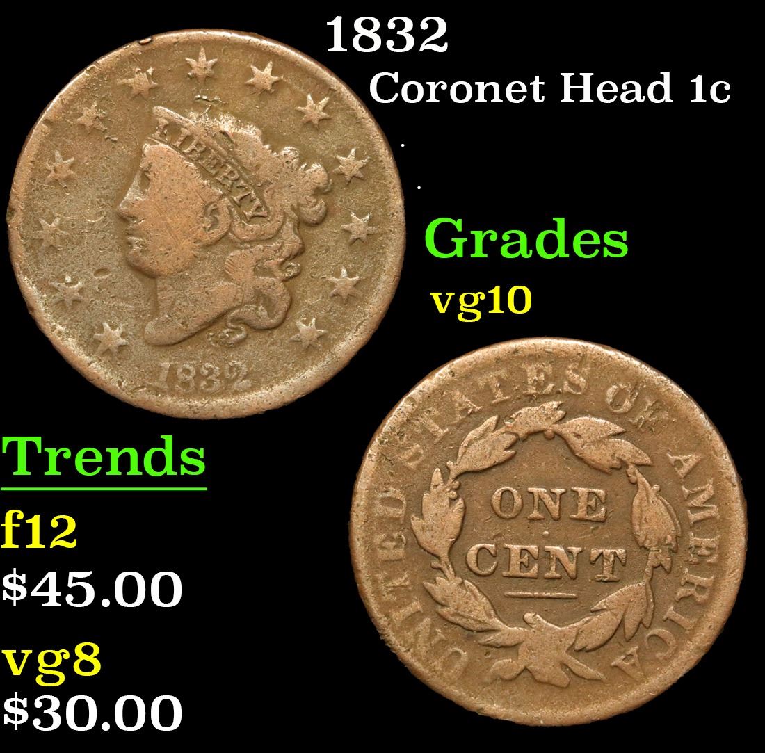 1832 . . Coronet Head Large Cent 1c Grades vg+.