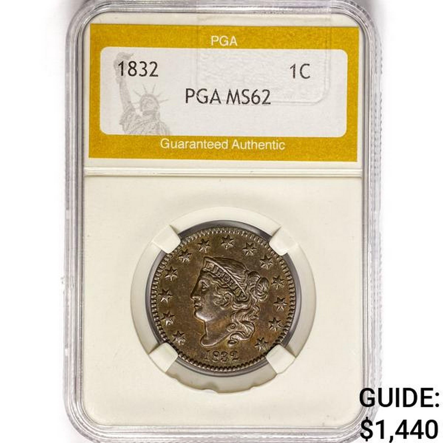 1832 Coronet Head Large Cent PGA MS62