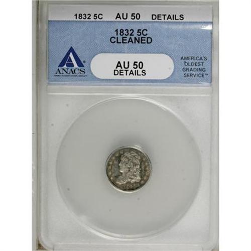 <B>1832 H10C --Cleaned--ANACS. AU50 Details.</B></I> NGC Census: (6/678). PCGS Population (23/546). Mintage: 965,000. Numismedia Wsl. Price for NGC/PCGS coin in AU50: $183. (#4279)<BR><BR><B>Coin Engraver:</B> William Kneass<BR><BR><b>Shipping:</b> Coins & Currency (<a target="_blank" href="http://www.heritageauctions.com/common/shipping.php">view shipping information</a>)