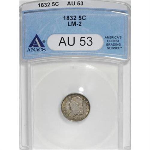 <B>1832 H10C AU53 ANACS.</B></I> LM-2. NGC Census: (6/655). PCGS Population (18/511). Mintage: 965,000. Numismedia Wsl. Price for NGC/PCGS coin in AU53: $192. (#4279)<BR><BR><B>Coin Engraver:</B> William Kneass<BR><BR><b>Shipping:</b> Coins & Currency (<a target="_blank" href="http://www.heritageauctions.com/common/shipping.php">view shipping information</a>\)