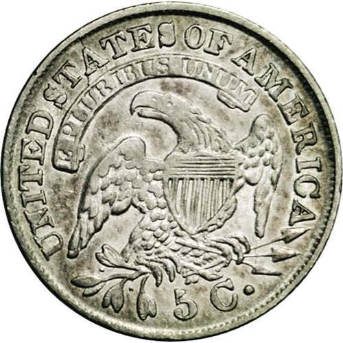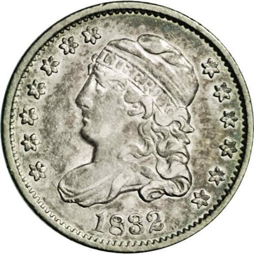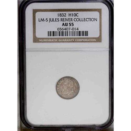 <B>1832<H10C> V-5, LM-5, R.1. Reiver state d, late. AU55 NGC.</B></I> Steel gray and attractive, with no surface problems. A later die state with an additional die crack from the A of STATES to the scroll below, but not to the beak as seen on later die states. A faint crack is seen from the right wing tip. A pleasing coin to represent this later die state for the variety collector.<BR><I>Ex: Werl (September 1983).</B></I> Envelope Included.