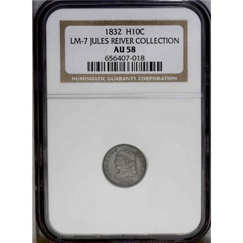 1832 H10C AU58 NGC. LM-7, V-9, R.2. The obverse is ton 1832[H10C] V-9, LM-7, R.2. Reiver state a. AU