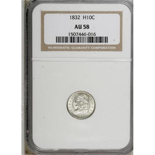 <B>1832 H10C AU58 NGC.</B></I> NGC Census: (104/549). PCGS Population (80/381). Mintage: 965,000. Numismedia Wsl. Price for NGC/PCGS coin in AU58: $225. (#4279)<BR><BR><B>Coin Engraver:</B> William Kneass<BR><BR><b>Shipping:</b> Coins & Currency (<a target="_blank" href="http://www.heritageauctions.com/common/shipping.php">view shipping information</a>)