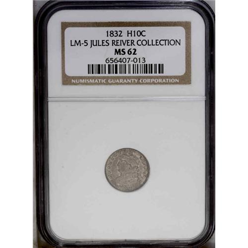 1832 H10C MS62 NGC. V-5, LM-5, R.1. Reiver state d, la 1832[H10C] V-5, LM-5, R.1. Reiver state d, la