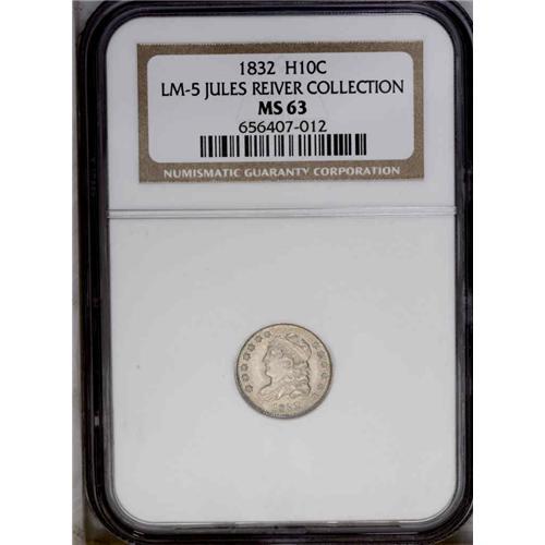1832 H10C MS63 NGC. V-5, LM-5, R.1. Reiver state d. A 1832[H10C] V-5, LM-5, R.1. Reiver state d. MS6