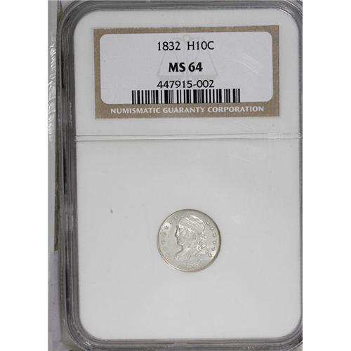 <B>1832<H10C> MS64 NGC.</B></I> V-1, LM-3, R.1. Choice and exceptionally lustrous for this issue. Sharply struck with a few small, short abrasions that restrict the grade.