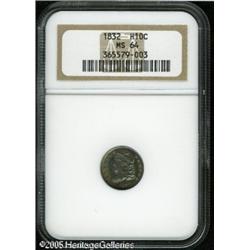 <B>1832 H10C MS64 NGC.</B></I> V-2, LM-12, R.2. Iridescent aqua and lilac toning over lustrous surfaces. The design elements are sharply struck throughout. Lot:6109
