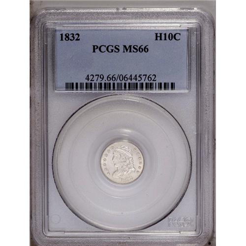 <B>1832<H10C> MS66 PCGS.</B></I> V-5, LM-8.2, R.3. This is an extremely important opportunity for the advanced die state specialist, and it was described by Logan and McCloskey as the rarest of the five LM-8 die remarriages. The authors further noted that only a few high-grade examples of this die marriage had been found. The present example is far finer than the Reiver specimen, and is possibly the finest known example of the LM-8.2 variety.