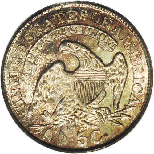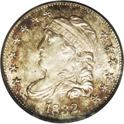 <B>1832<H10C> MS66 PCGS.</B></I> V-1, LM-3, R.1. According to the LM reference, "examples of this die marriage are readily available in all circulated grades. An example described as MS-64 was auctioned by Heritage, 7/93: 6086." This superlative MS66 is surely one of the finest known. Each side is exceptionally lustrous and richly toned in variegated shades of olive, gray, tomato-red, and lime-green. Broad mechanical doubling is noted on the reverse legends and denomination. Well struck with no obvious or distracting marks on either obverse or reverse.