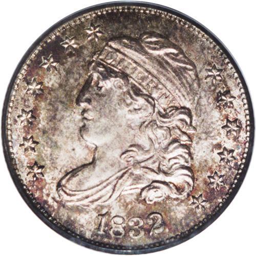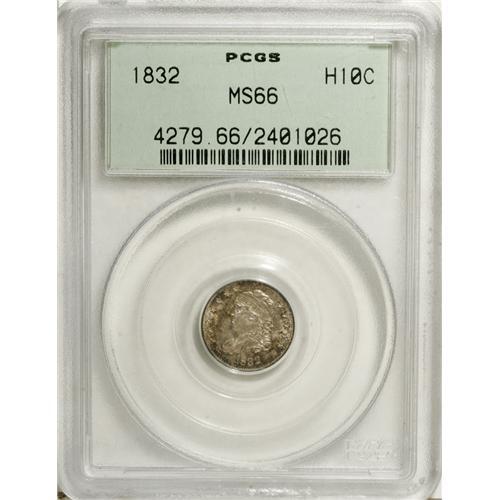 <B>1832 H10C MS66 PCGS.</B></I> V-1, LM-3, R.1. According to the LM reference, "examples of this die marriage are readily available in all circulated grades. An example described as MS-64 was auctioned by Heritage, 7/93: 6086." This superlative MS66 is surely one of the finest known. Each side is exceptionally lustrous and richly toned in variegated shades of olive, gray, tomato-red, and lime-green. Broad mechanical doubling is noted on the reverse legends and denomination. Well struck with no obvious or distracting marks on either obverse or reverse.<BR><BR><b>Shipping:</b> Coin/Currency (<a target="_blank" href="http://www.heritageauctions.com/common/shipping.php">view shipping information</a>)