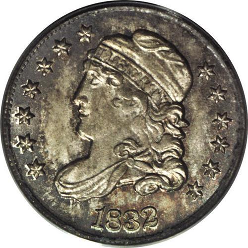 <B>1832<H10C> MS66 PCGS.</B></I> V-2, LM-12, R.2. Repunching shows on stars 12 and 13, with the latter extremely close to the hair curl. The E in STATES is low, and AM in AMERICA is joined. This is a fairly common die pairing, but seldom found in such superb condition. This Premium Gem example boasts pristine, richly toned surfaces with an amalgam of olive-green, smoke-gray, copper-orange, and russet on each side. This piece is exceedingly well struck, with full star radials and bold detailing on the highpoint hair and most of the eagle's legs and claws. The softness on the azures, or horizontal shield lines, is <I>not</B></I> to be mistaken for strike weakness: it is the result of a bulging die, and is always seen on this variety. It is doubtful that a more aesthetically pleasing example could be found. Worthy of specialist attention.