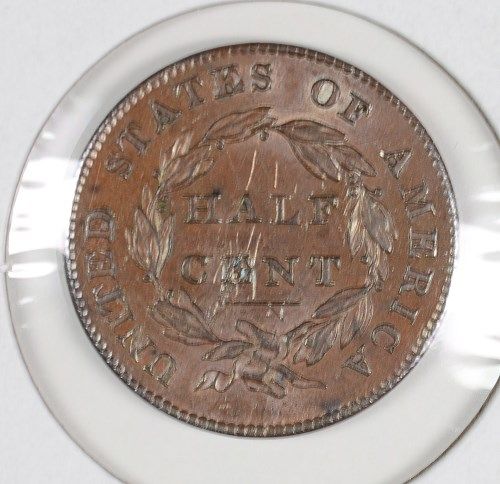 1832 HALF CENT, MS-65 BROWN DETAILS,
