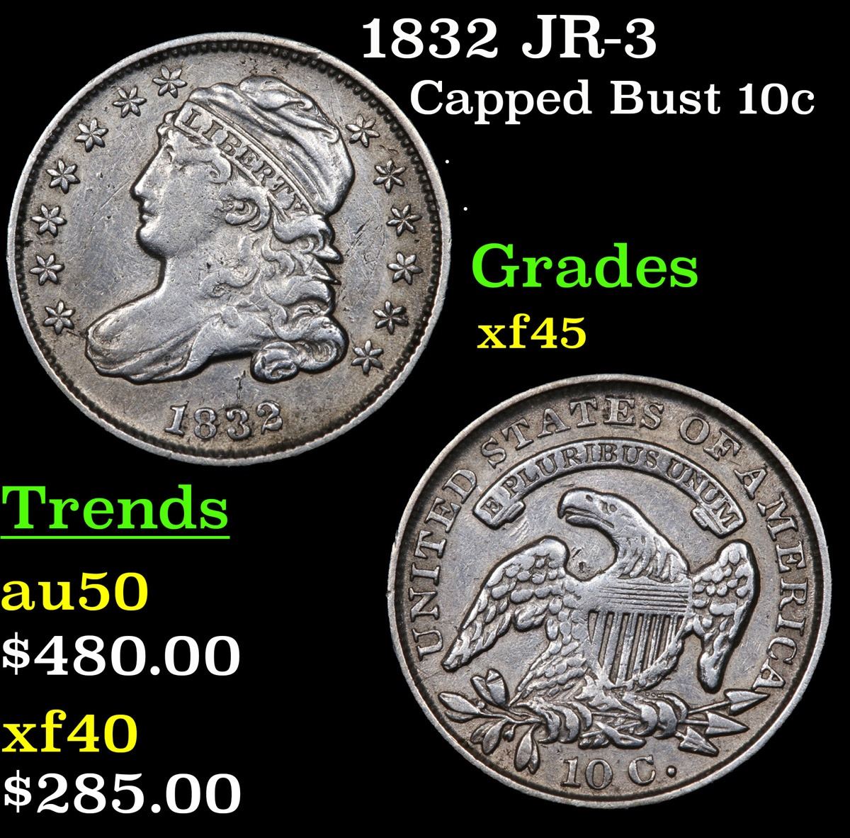 1832 JR-3 Capped Bust Dime 10c Grades xf+.