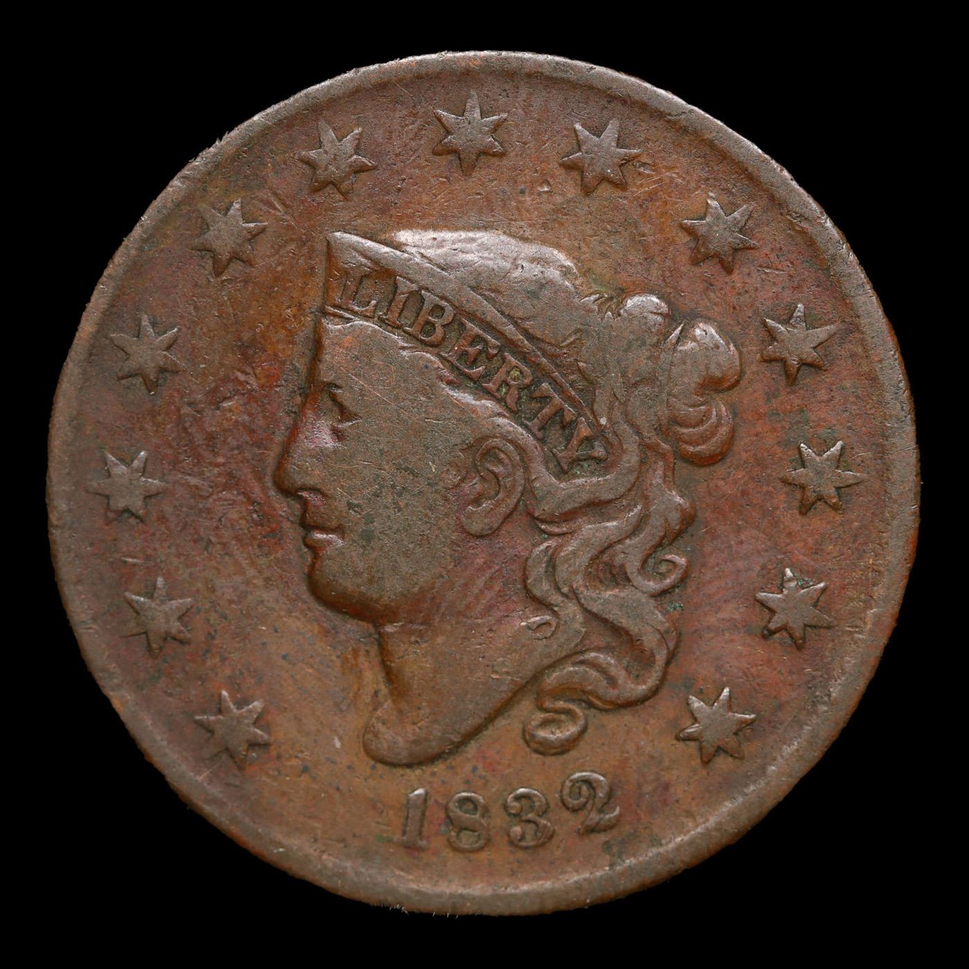 1832 Medium Letters Coronet Head Large Cent 1c Grades vf++.