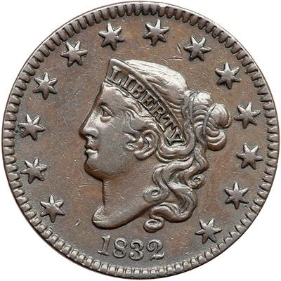 1832 N-1 R2. VF-25. Small Letters Reverse. Choice glossy chocolate brown. No defects, virtually perfect for the grade. MDS.