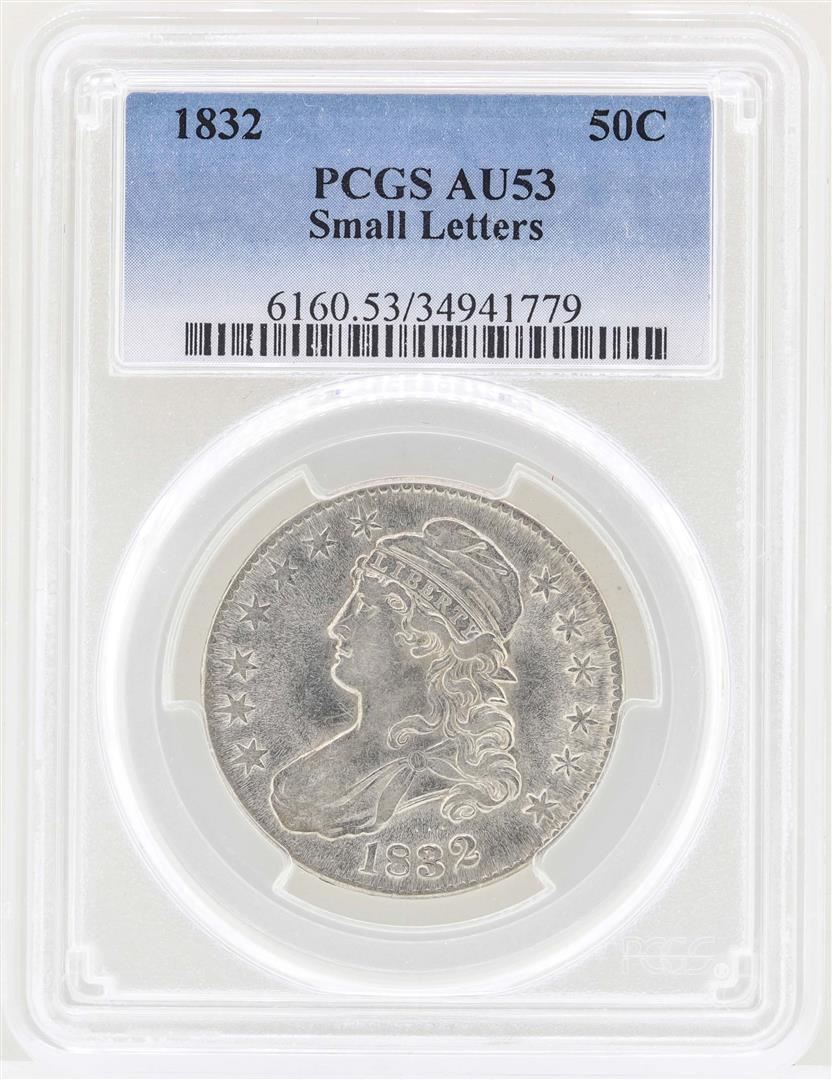 One 1832 Small Letters Capped Bust Half Dollar Coin PCGS AU53. PCGS Graded.