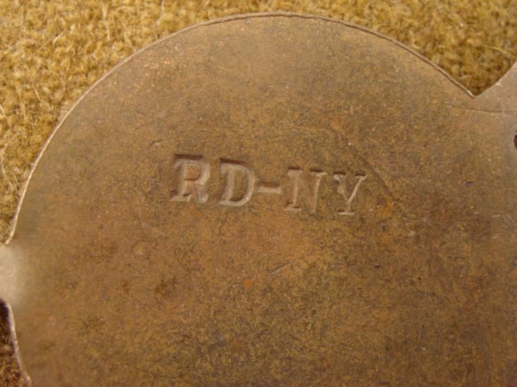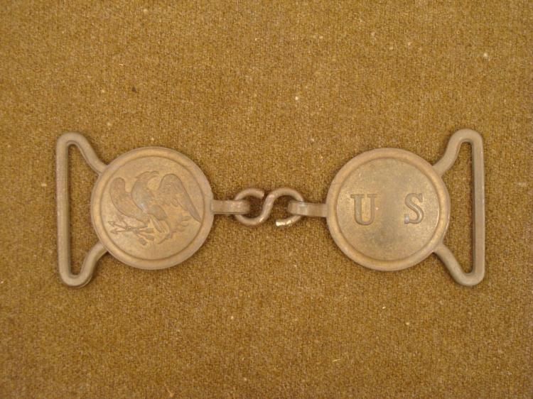 1832 U.S. ARMY SWORD BELT PLATE-BRASS-2 PC. -U.S. AND EAGLE * RARE SWORD BELT PLATE MODEL 1832/33 -TWO PIECE WITH HOOK ON "S" RING CENTER-AS SHOWN IN REFERENCE BOOK "PLATES & BUCKLES OF THE AMERICAN MILITARY 1795-1874-BY SYDNEY C. KERKSIS" ON PAGE 12--GENERAL SERVICE PLATE -REVERSE MARKED "RD-NY". -SOME SCRAPING TO A SMALL PORTION OF "S" RING-OTHERWISE GOOD CONDITION & NICE PATINATION *