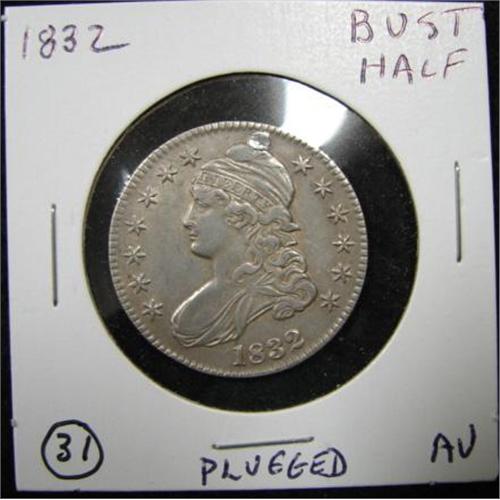 1832 U.S. BUST HALF DOLLAR. AU. Plugged.