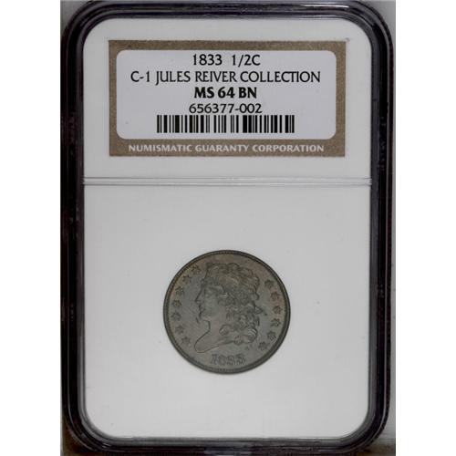 1833 1/2 C C-1, B-1, R.1 MS60. Die State 1. Large date 1833[1/2 C] C-1, B-1, R.1. Die State 1. MS64