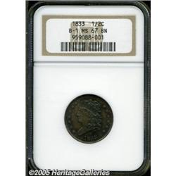 1833 1/2 C MS67 Brown NGC. B-1, C-1, R.1. Sharply