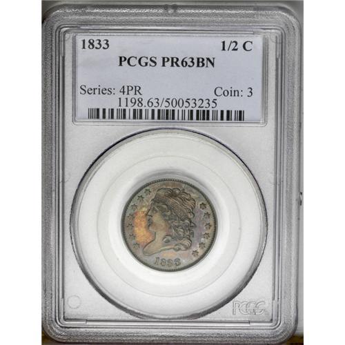 1833 1/2 C PR63 Brown PCGS. B-1, R.5 as a proof. Breen 1833