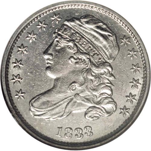 1833 10C Last 3 High AU58 NGC. JR-7, R.6. Mostly brill 1833[10C] Last 3 High JR-7, R.5. Reiver state