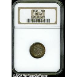 1833 10C MS65 NGC. JR-9, R.2. A gorgeous toned co