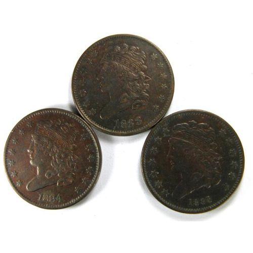 1833, 1834 and 1835. Three pieces, all VF-EF or better, and lightly cleaned