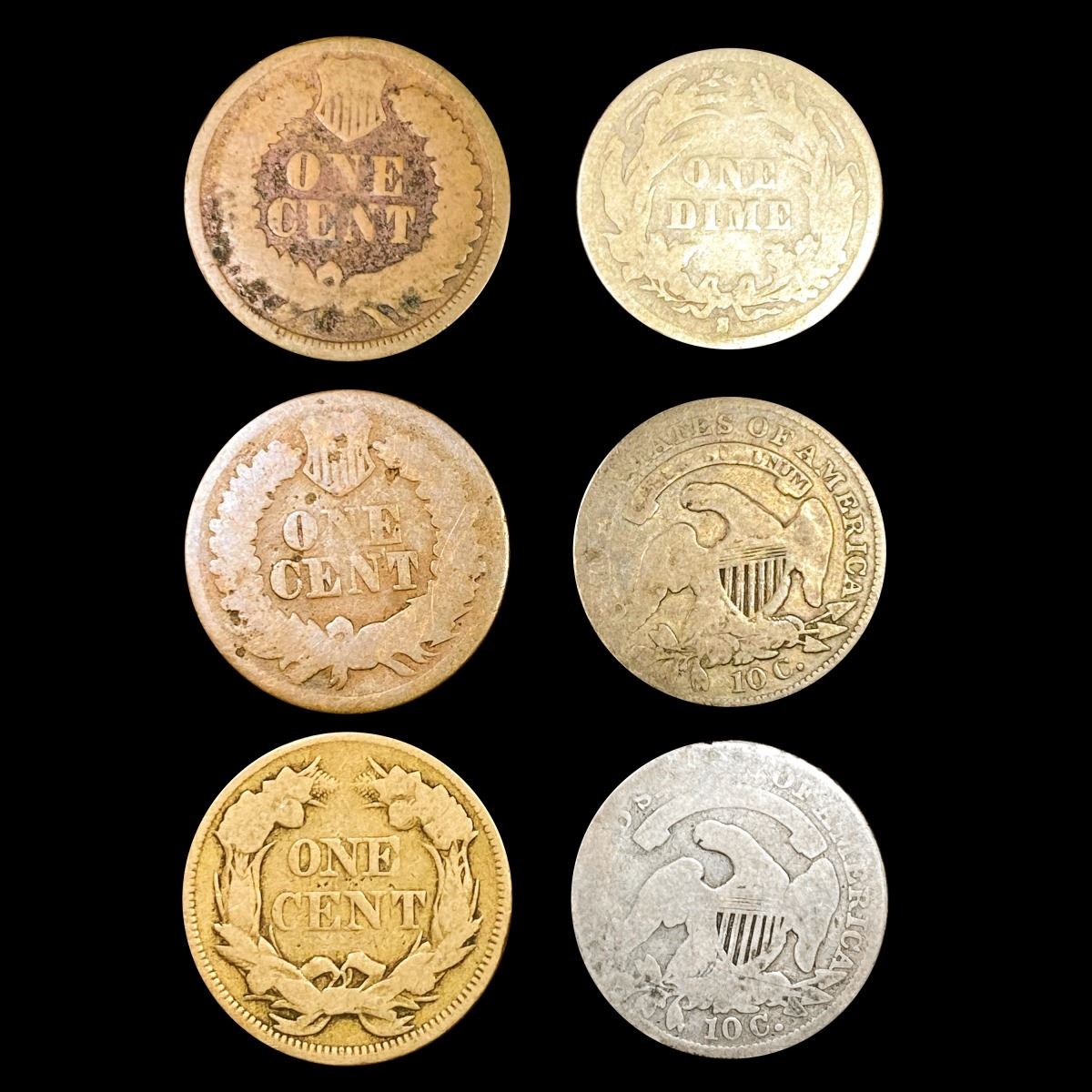 1833-1895 10C Capped Bust, 1C Flying Eagle &