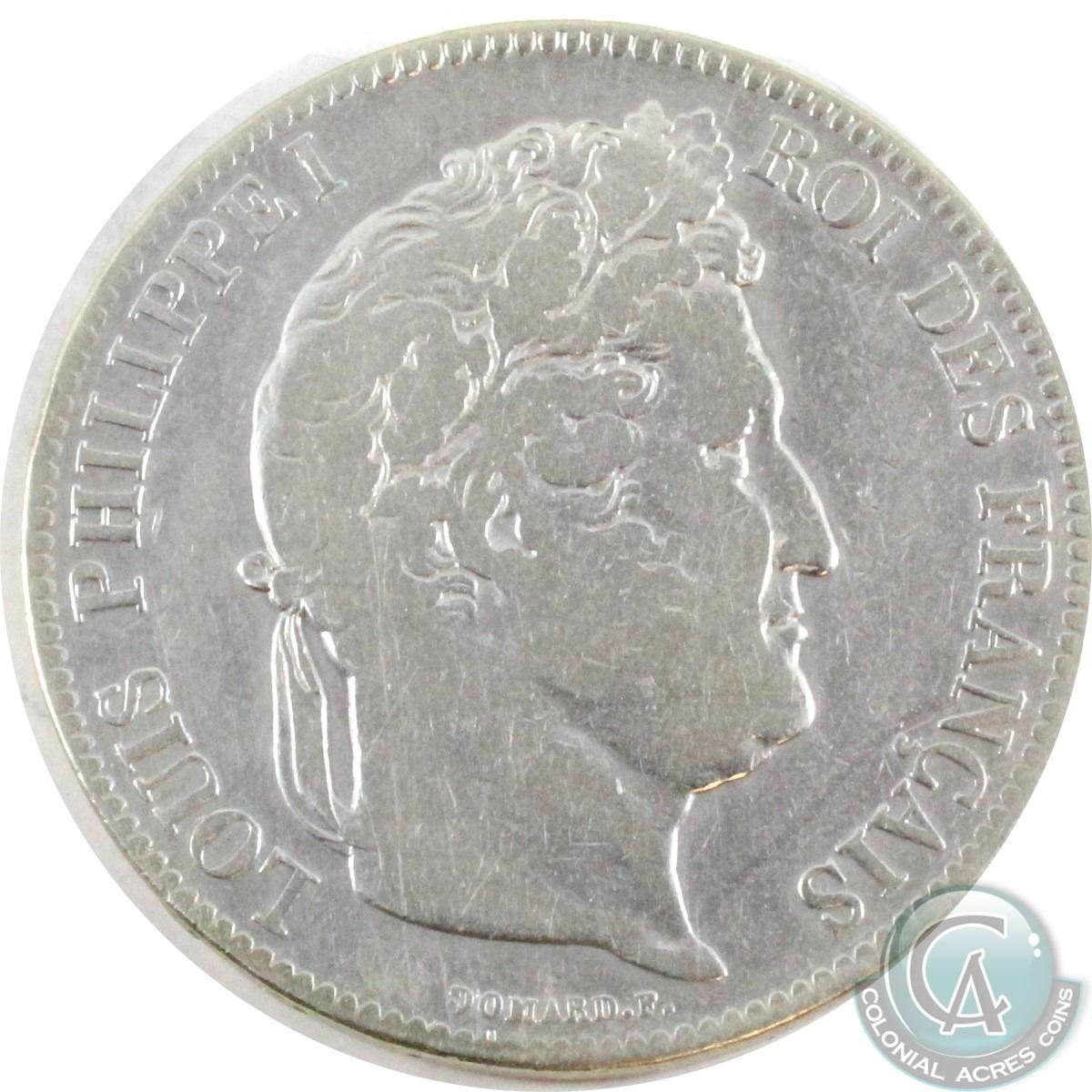 1833 5 Francs Coin Issued in France featuring King Louis Philippe I.