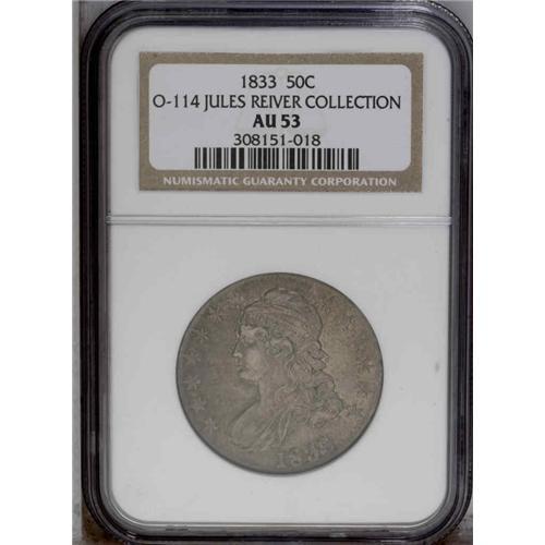 1833 50C AU53 NGC. O-114, R.2. This variety''s obverse 1833[50C] AU53 NGC.